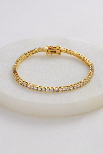 The matching bracelet to our viral Dani Tennis Necklace. This timeless piece features a row...