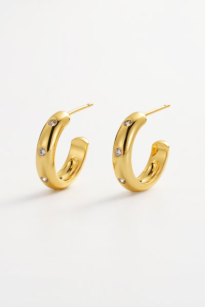 The Talia Hoops are a modern statement hoop featuring a softly sculpted silhouette accented with delicate crystal detailing. Designed to elevate everyday styling, these hoops bring subtle sparkle while maintaining a clean, timeless aesthetic.