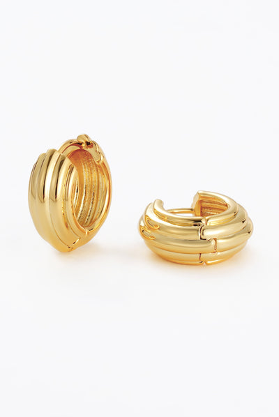 A delicate yet distinctive piece featuring a unique ridge design. This small hoop is perfect for effortless styling, whether worn alone or stacked for a curated ear look. Designed to complement our Paris Hoops.