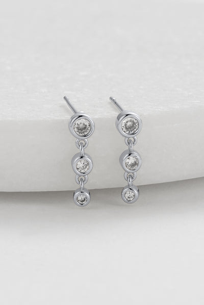 The Abby Earring features a cascading trio of bezel-set crystals that shimmer with every move....