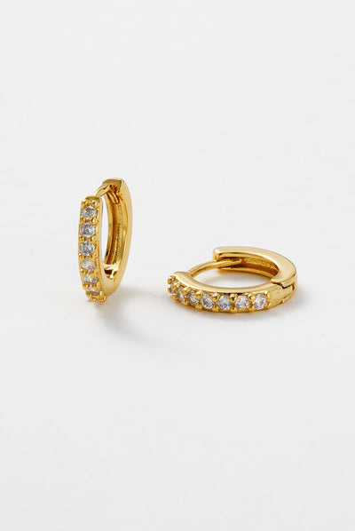The Ally Huggie is a dainty crystal-studded hoop, designed to add a subtle sparkle to your everyday style. Perfect for stacking or wearing solo, this delicate piece is a timeless addition to any jewellery collection.