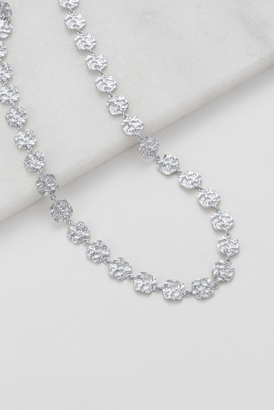 The Bonny Necklace is a modern classic with a textured twist. Featuring a chain of organic-inspired disks, each piece catches the light with a subtle shimmer, creating a look that’s both bold and versatile. Perfect worn solo as a statement or layered with finer chains, this necklace adds texture and elegance to any outfit. Pair with the Bonny Bracelet for the perfect stack.