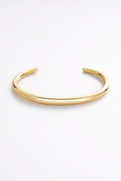 The Cleo Bracelet is a sleek, sculptural cuff designed with a smooth, polished gold finish. Its clean curved silhouette creates a modern statement while remaining effortlessly minimal, making it the perfect piece to elevate everyday styling.